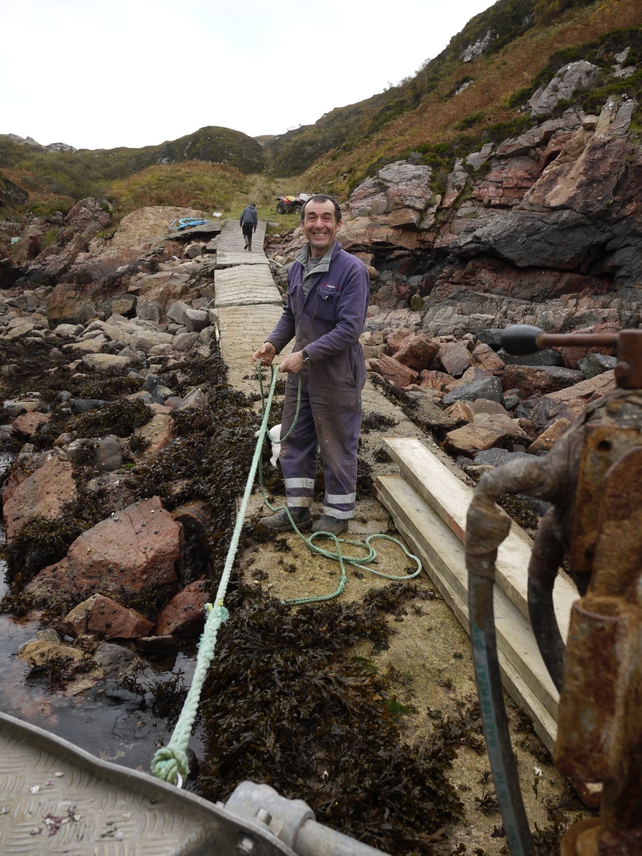 The last couple of weeks were quite full, yesterday after recovering slightly from a full cold I thought, it is calm, there is a Tup sale next week in Portree so why not get the tup over. Richard the tups previous owner had offered to take him to the sale but a blown back axle put paid to that. Then I called Caley over at Stoer and he offered to come and collect. So a mad rush and by good fortune the tup was in the boat and we were on our way.