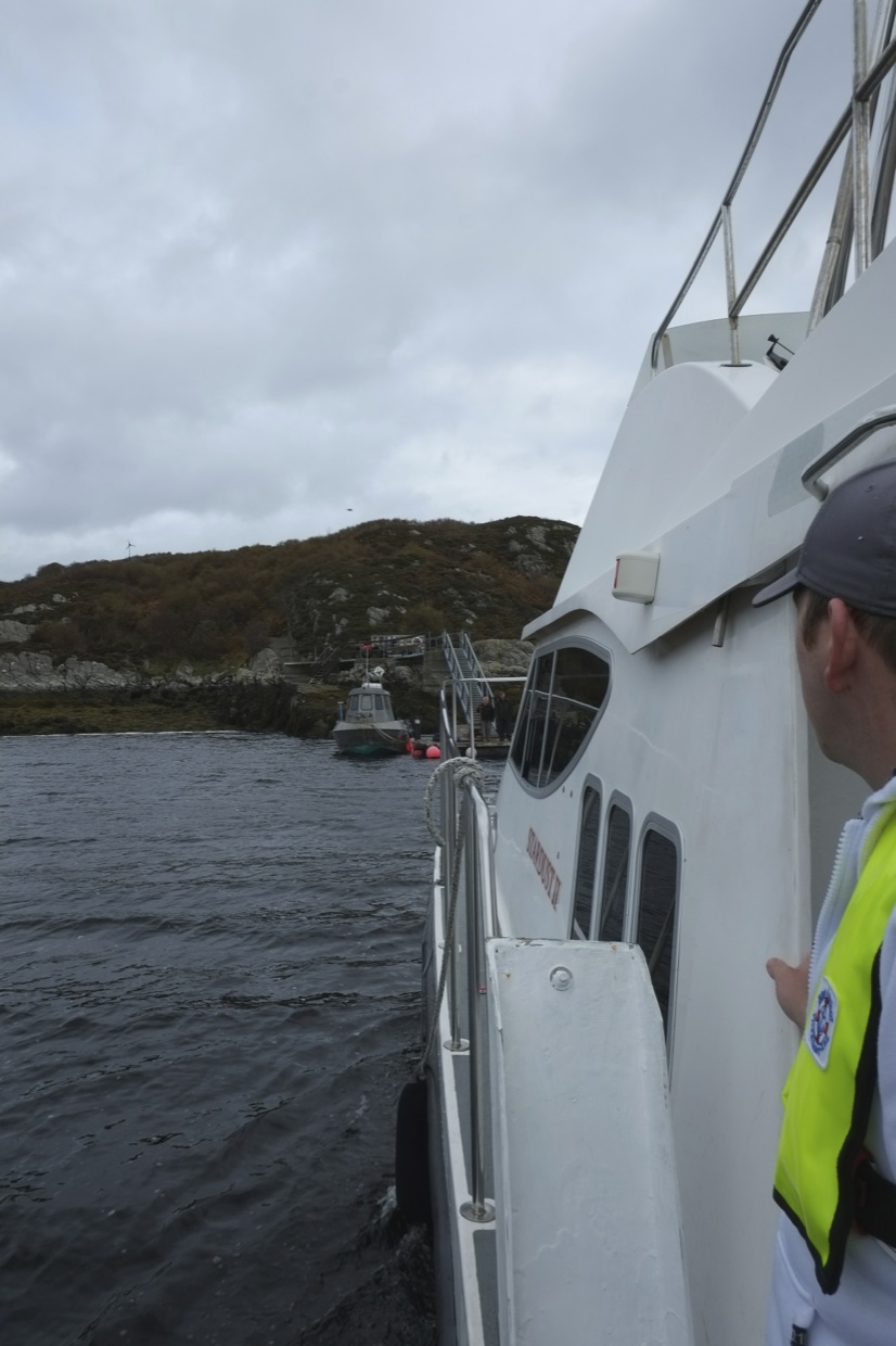 Wednesday night , Iain from the Stardust called, he had a trip to the Lighthouse the next day and if he managed it then I should get our honeymooners on the pontoon for the return leg. Because the forecast was nuts and that they may be stuck until Monday perhaps Tuesday!! It was 9 at night and raining so I thought I would go over first thing. But could not move until Iain left Portree. The next thing I knew he was at the lighthouse so things happened pretty quickly after that. Our guests had a rude awakening and were on the boat, just like that. I guess they will still be wondering what happened.
