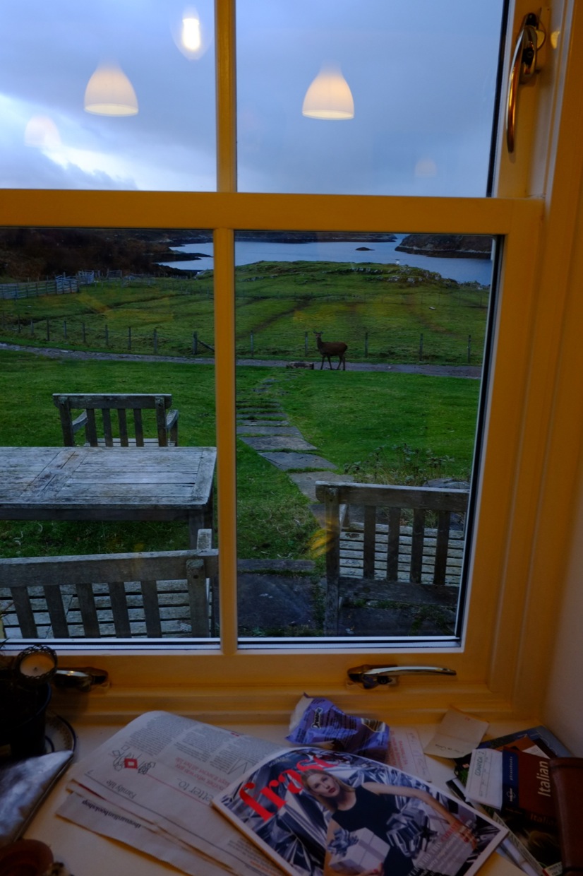 It was good to get out with the rifle and assess the deer numbers, the weather was fine with good views out to the Outer Isles and back to the mainland. After years of monitoring the herd and holding back on the hind cull, I’m afraid numbers are at the higher end now and it is time to start. The rut and stag shooting in October is pretty exciting especially with all the action. But, the real stalking starts in the winter when the hind cull takes place. The hinds are very watchful and one false step and their off. I did see plenty and also quite a few stags which is encouraging. So a quick call to our stalker friend Wallace and he is organised to come over to-day (Monday 24th) to help.