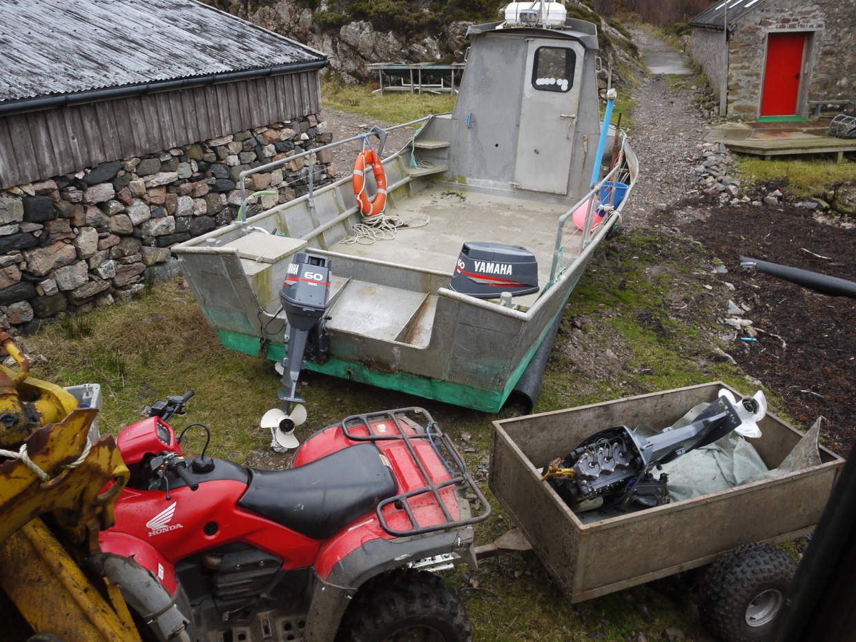 With dry days it was good to get on with the pre-winter jobs. The JCB started for a change so it was straight into removing the boat engines. Calum had stripped them but I had to take them off and up to the shed for some major servicing.
