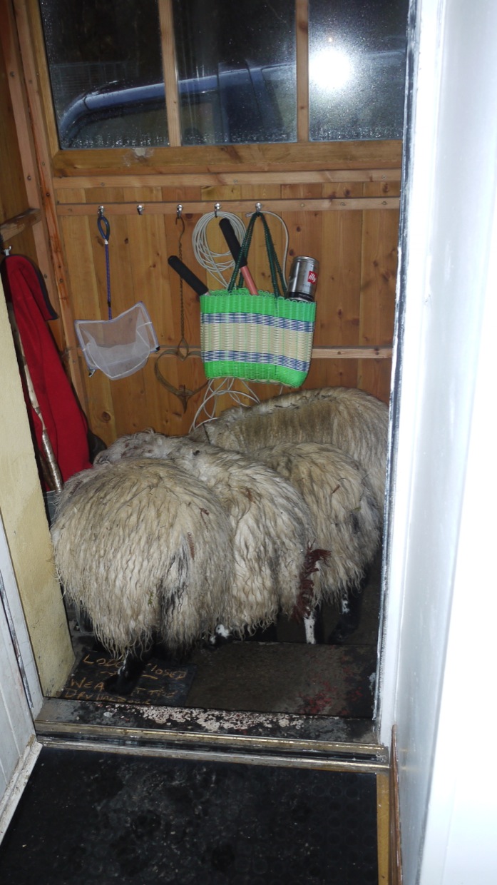 I heard a funny noise when I was chatting on the phone and thought it was L, but on closer inspection I found our four lambs stealing from a bag of feed left at the door. Next day they were in the room so the ‘Baby Gate’ was put up. Now it is ‘hopefully’ secure from marauding lambs.