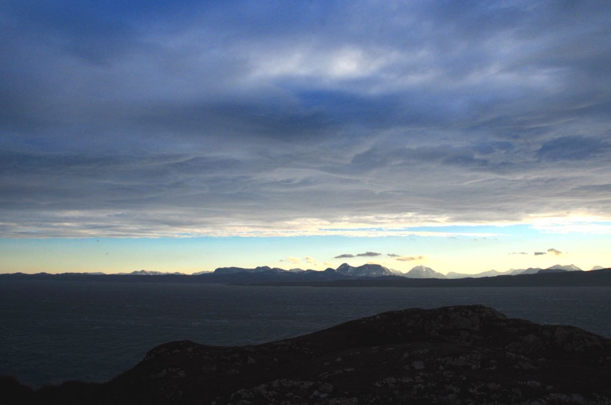 They had had a lovely sunny sail up and we got unloaded quickly as lunch was getting prepared up at the Lodge. By the time we got there the sun was at its best and we decided to eat out, we had a very nice lunch with a beer in the sun, almost summer like and everyone in good form. We had a look up at the cinema to see how Erik looked in his new home and then a wander up to the proposed new house site. All to soon the boat left and we enjoyed another Rona sunset. Saturday night is movie night and last night we watched the ‘Shining’ just the movie for winter on Rona!!!!