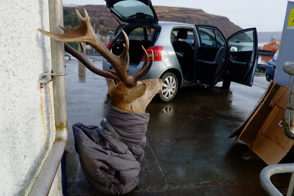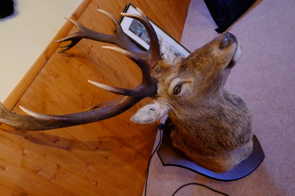 I’m not a great lover of ‘Trophies’ and although Erik is one, the reason we got him mounted was because of his place in the deer re-introduction on Rona. Long after we’ve gone, Erik will still be here. We no longer see him on our winter trips out at the mouth of the harbour or for that matter any of his companions, they are keeping a very low profile. But deer management necessitates.