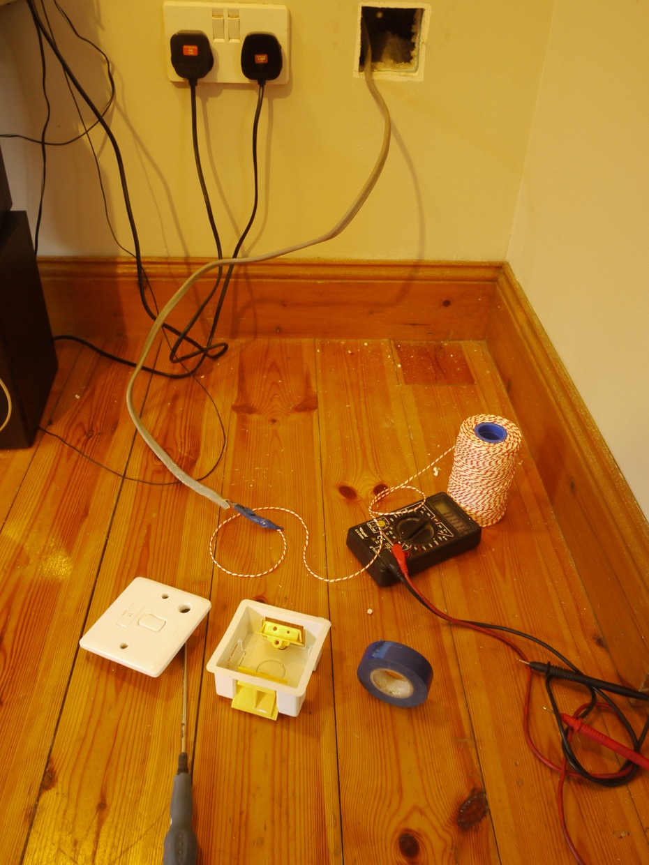 After weeks of looking after the ‘Applenet’ system with great telephone support I thought I had left the electrics behind (it is now working perfectly after Calum’s intervention). But no, we are going to sort out damp and the stove in the lounge so the co-axial cable needs moved.