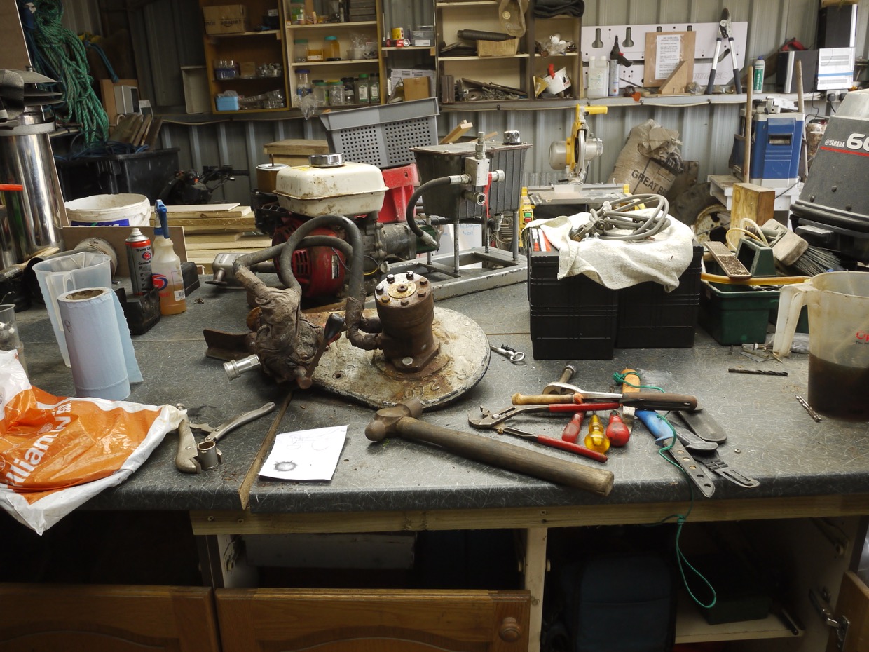 When the light finally went out the temperature plummeted and it was a very frosty night. Friday morning all the sheep were around the house first thing, it had been a very cold night. After I fed them we started spring cleaning in earnest. L was stripping the Lounge and I started on the sheds and boat stuff. After lying mouldering in the corner it was no surprise to find the boxes of boat stuff, the cables, remotes, and engines needed a major clean, degrease and lubrication , with lots more work to come. The creel hauler as usual was a ‘lump’ of rust, no wonder the harsh environment but a good machine made locally on Raasay, I am told it is one of the early ones of this model.