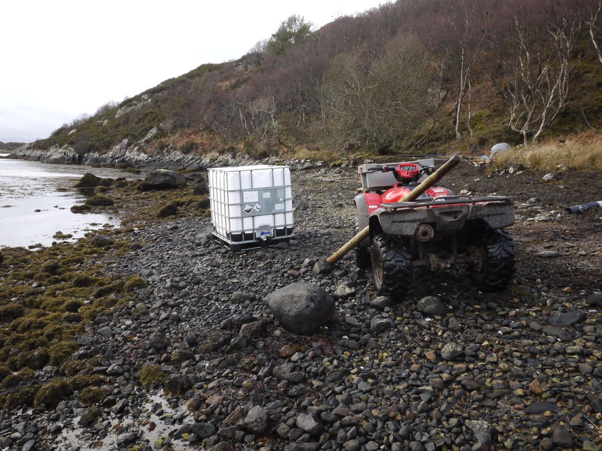 Sunday was a quite a good day, in between the showers. We went for our Sunday stroll over to the bay behind the house. Quite a lot of winter plastic needing to be picked up. A future job in the stinking seaweed which I hate. The plastic we get from Portree never gets any less.