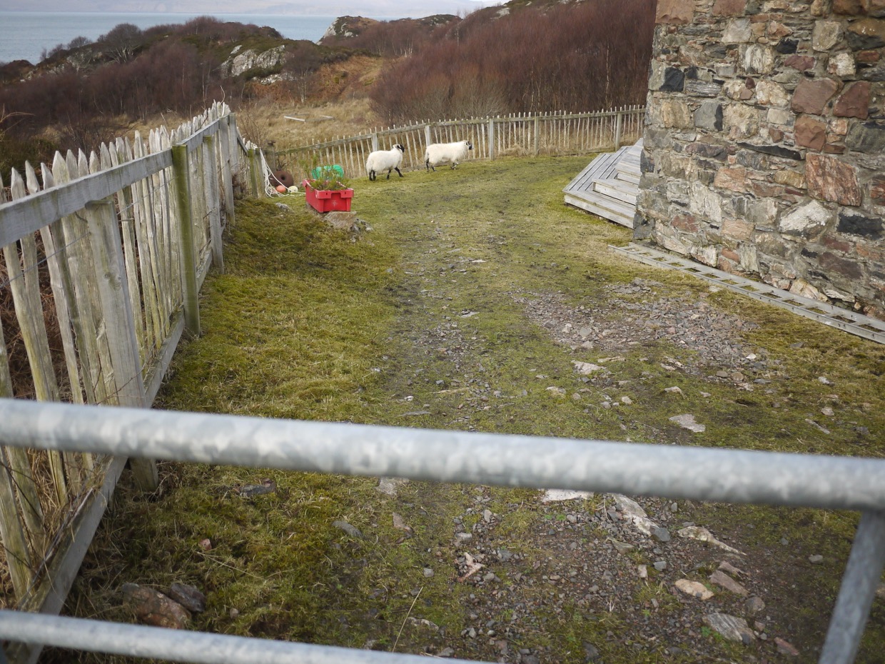 When I arrived at ‘Escape’ I found the escapees trapped in the garden. Derick had managed to creep round the house the night before and lock the gate. I was pleased that I had repaired the fence, because the sheep were very wild having had their freedom since the sheep incident in September.