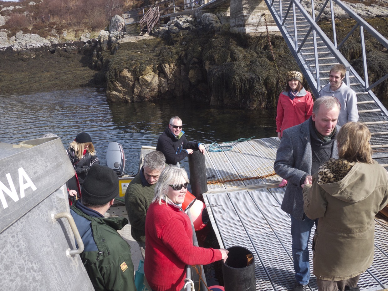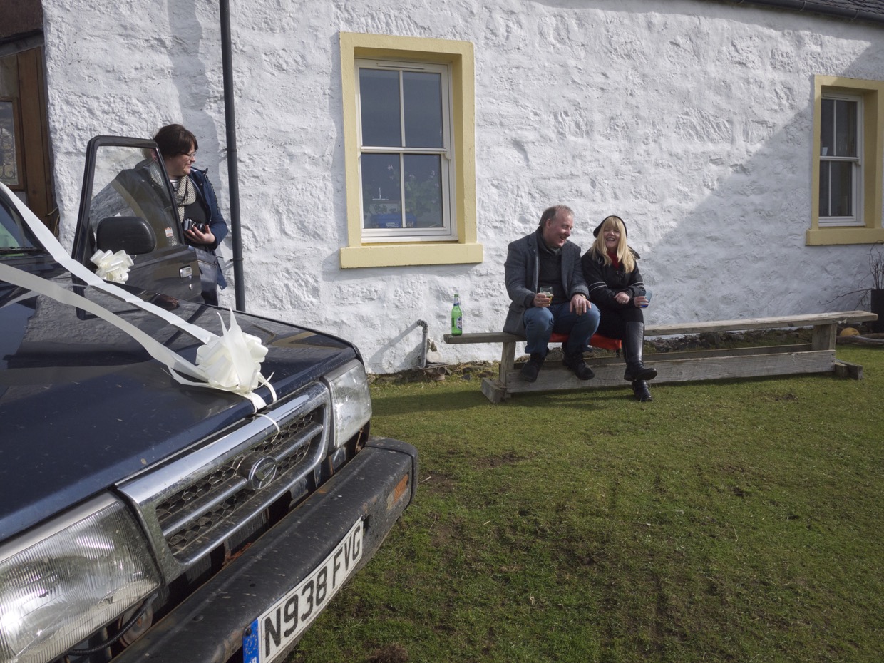 MV Aspire came out Thursday to pick up Calum and Irene but also with a return of wedding guests to visit and to see us cutting the cake.