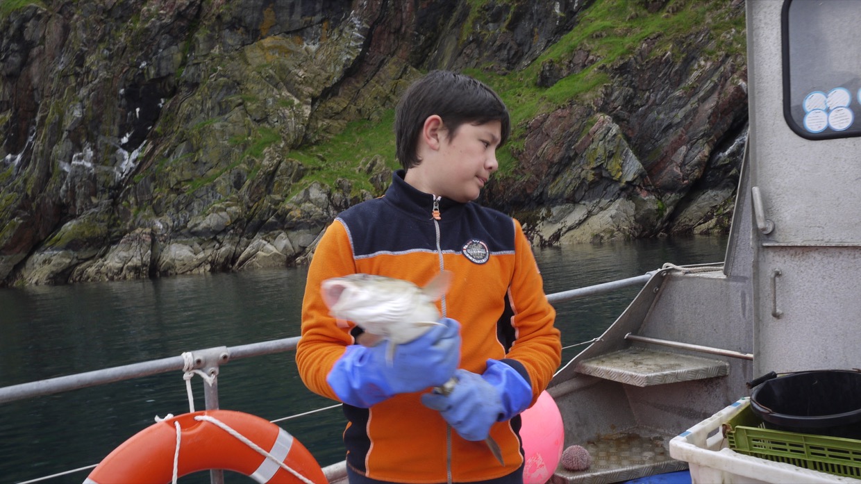 Next day Thursday it was a late breakfast then out fishing for the day, we picked up our creels and had quite a catch so that was dinner sorted but we had to have a shot with the rods, no Makerel or Pollock but quite a surprise for Mike to catch a fish and even bigger surprise to see it was a Cod. Not the most plentiful about here but a good sign.