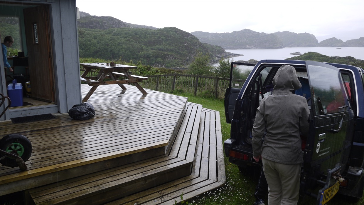 Fay and her two kids had arrived on the ferry for their annual escape to the ‘Escape ‘ cottage from Edinburgh (no TV’s, iPad’s, MacDonalds and people!!!). Unfortunately the heavens opened and for a few hours it poured.