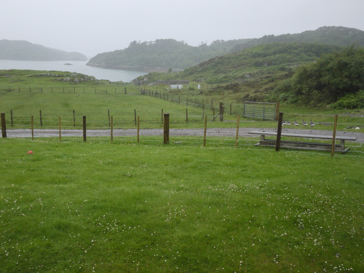 Fay and the boys who were in Escape last week left early Saturday morning, Dan was doing the run, Pam and Kevin were attending their son Callum and daughter in law Rachael’s wedding in Portree. What a day for a wedding but a marquee was up and well tested so I guess their day would have been very good regardless, we will hear no doubt to-day the story. It was a wet morning (Saturday) though and a heavy shower soaked our stores in seconds before I could get them to the house. The jeep had failed to start (I’d left the lights on!!!!!!!) after a whole day Friday ‘trying’ to fix the exhaust which had sheared off. I was grateful to still have the bike working but on cue it started to splutter and lost power, I have since then found water in the petrol!!