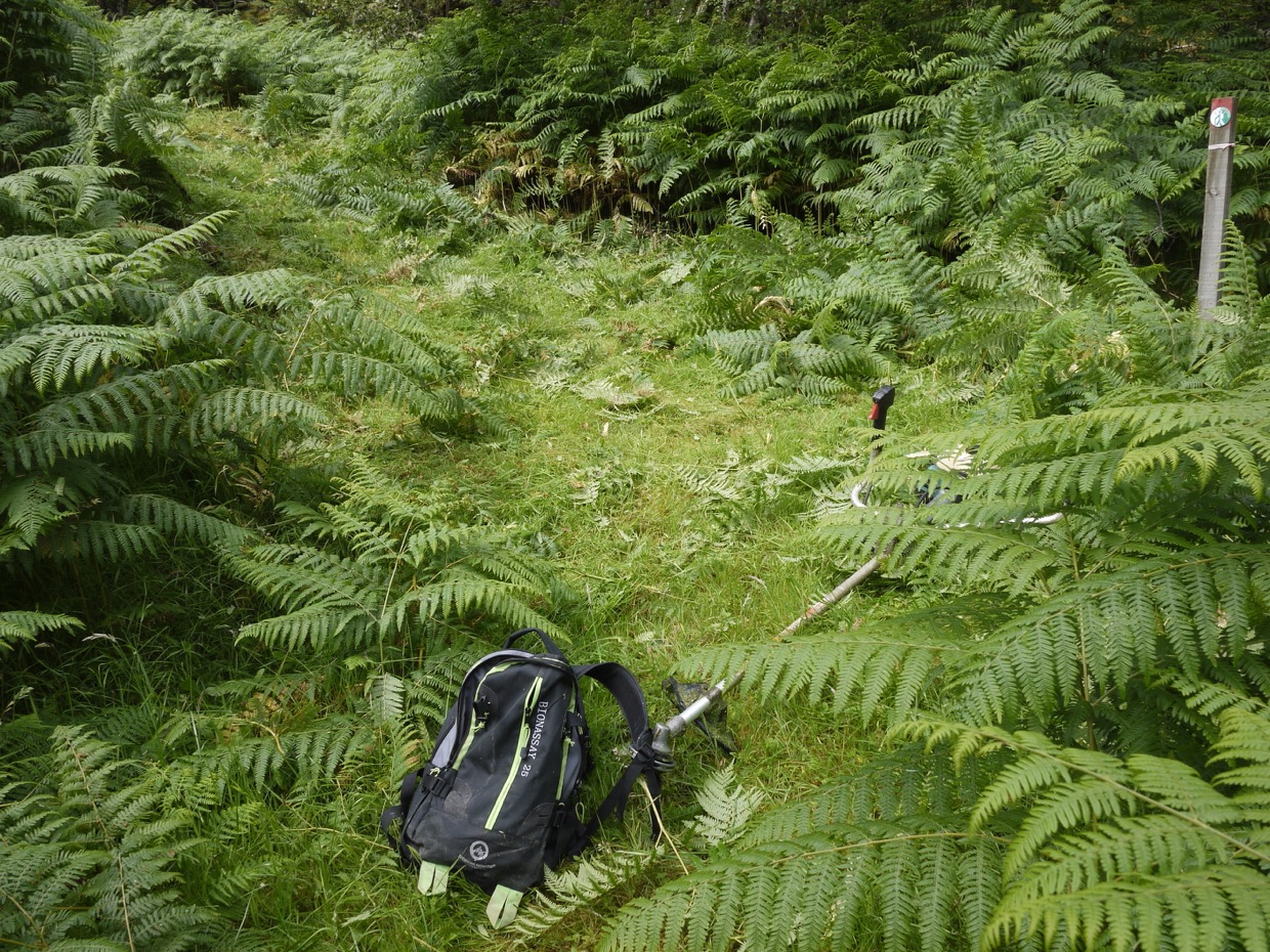 It was quite calm over on the East side with lovely clouds over the Torridon range. Venison sales are going strong and running out as we get it into the freezer, despite the weather and less visitors this year we are selling plenty of it. When I was out prowling I noted that the path running down to the East side was needing strimmed so that was to-day’s job.