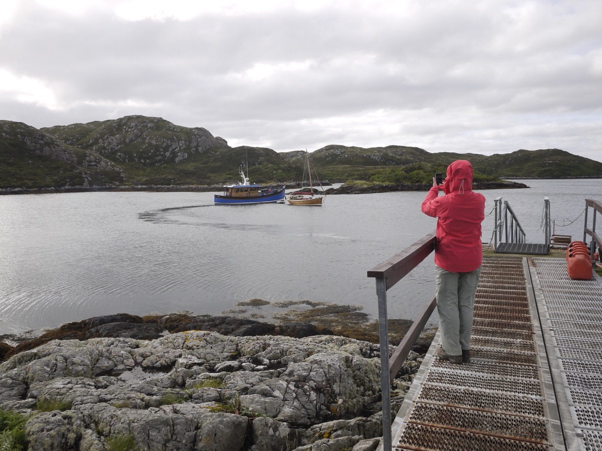 Like most jobs we had to wait until Saturday to get bits and pieces to finish it off. So the job stopped on Friday. That afternoon we had Robin and Heather visit us on their yacht Rowan IV. Rowan IV was built in 1938 by Mcgruer’s of Clynder, on the Clyde. Well known in its previous life when it belonged to Robin’s great uncle, Dr Robert Carslaw, who wrotes the book ‘Leaves From The Rowan’s Log’. Nice to see a classic yacht, carefully restored on the mooring. We had a lovely evening and walked them down to the pontoon, just in time to see Yacht Tramontaine trying to anchor.