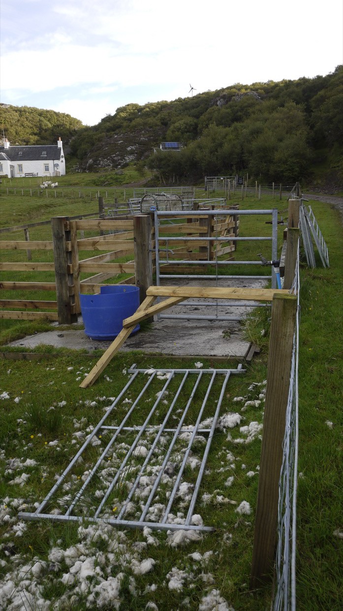 Down the pier then to get the jeep but thought, Andrew and Lyndsey saw a mink, better set the traps. Spotted another job, the stand for the sheering lines was blown off.