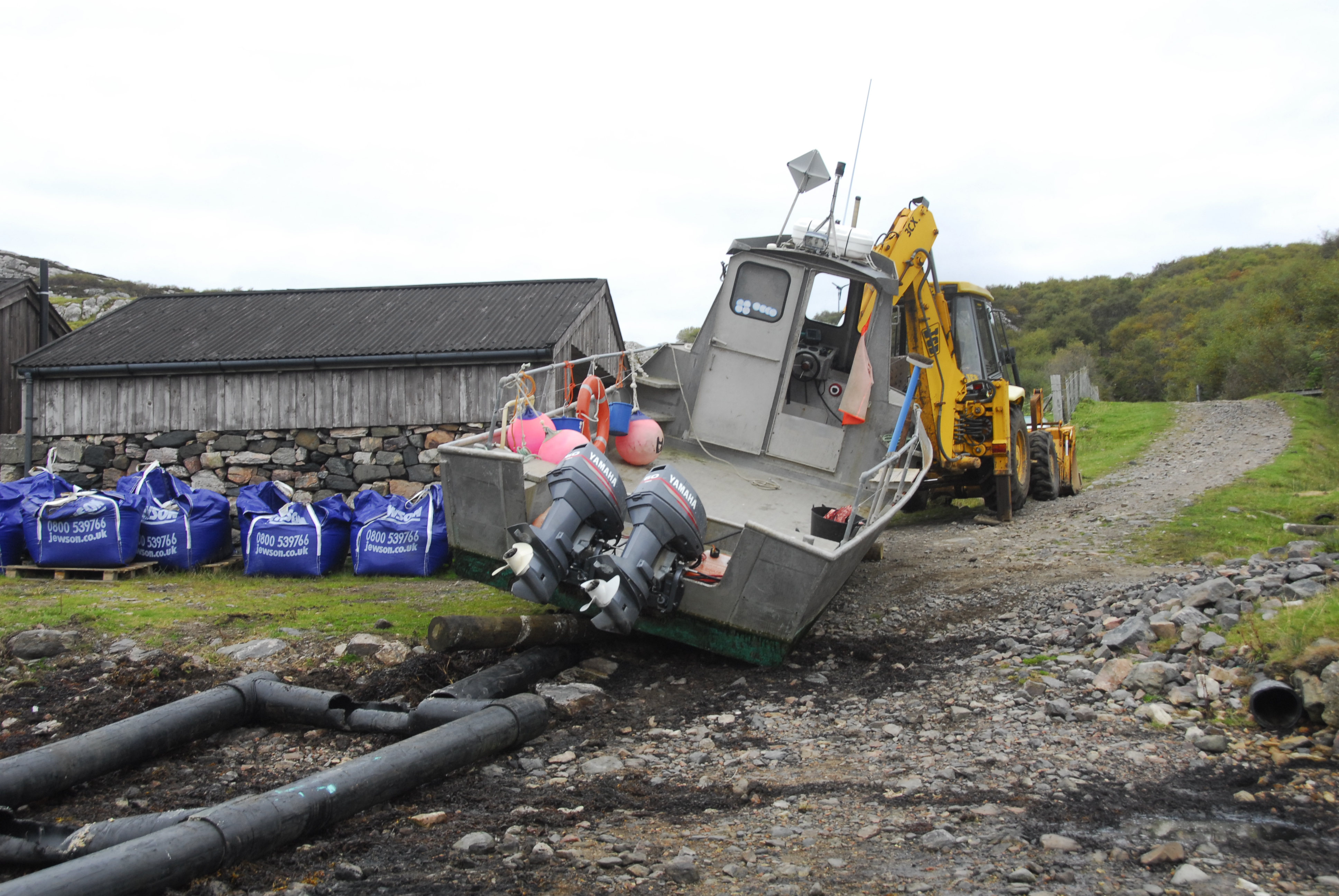 The boat was slipping down the list and in among it I got the first puncture for a while, I whipped the wheels off so that Kevin could take them over to MacRaes for replacement. A thought ran through my head, punctures always come in threes around here. Sure enough next day, the jeep rear was flat. The stones are pretty sharp on the road I guess there must be one like a knife out there.