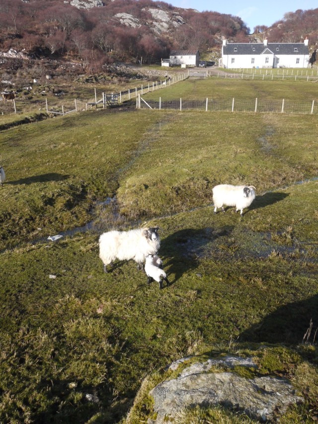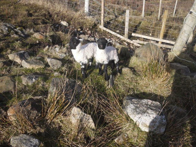To-day Sunday, Day off!!!! If you can have that on Rona our latest arrivals (not tourists) appeared. Last week sheep (ewe) no 361 turned up, obviously having just had a lamb, despite searching for hours, along the cliffs in the outrun, no lambs. But to-day the fears of lost lambs was averted when she turned up, proud as punch with these two. Well done her without the ‘so called’ shepherd’s intervention. Sometimes I think we should just leave ‘Blackies’ to it.