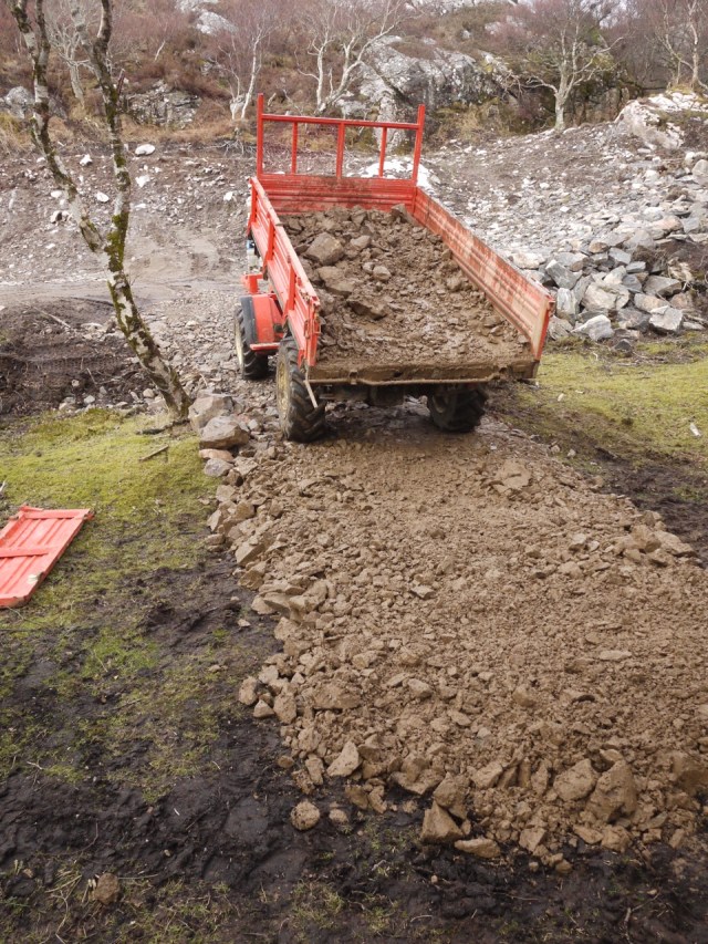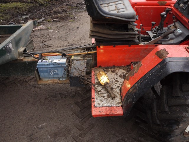 There was a problem, so when I took the tractor up top I was looking at the engine with my 40 year old ‘Snap on’ pit lamp (original bulb). Got to be the best. I tipped two JCB loads into the tractor and on top of the lamp. Shed it at the cabin and weh-hey it still worked!! Good stuff. I’d left the lamp in the back of the tractor.
