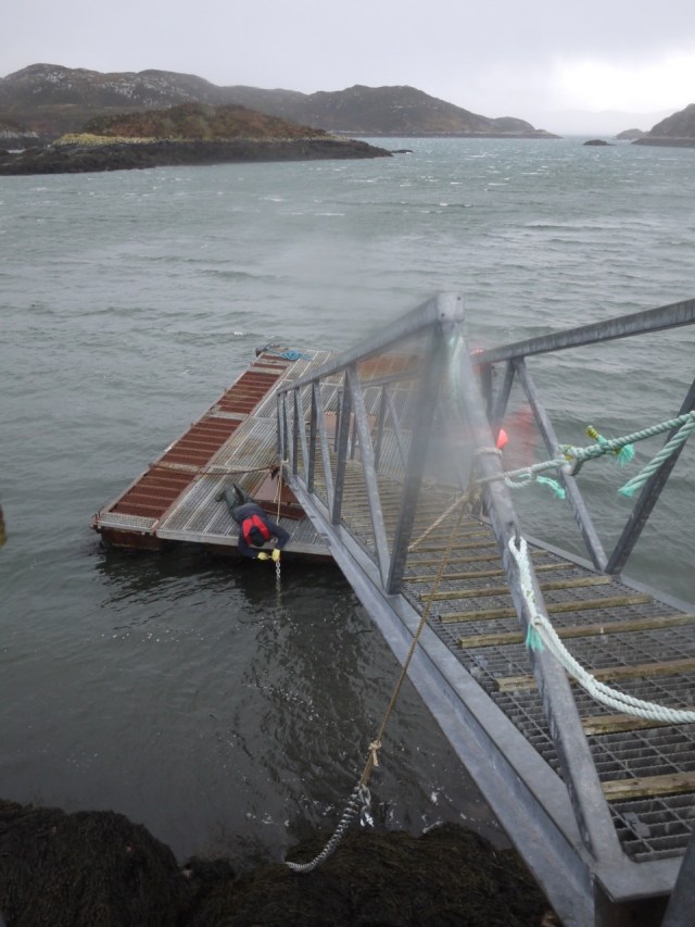 Okay, BBC said storm but it was beyond that, first thing down to the pontoon,that’s the first port of call after a storm, no disappointment, the pontoon had parted company with the shore!!!!
