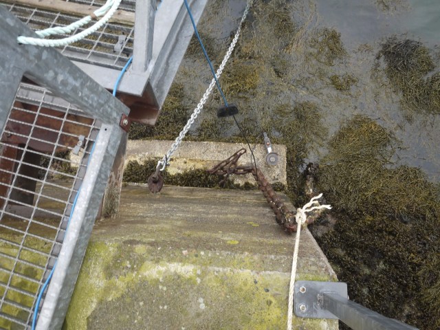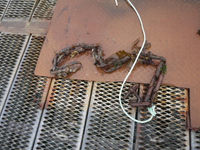 This chain holds the pontoon to the shore, 12 years constantly in and out of the water it has done not bad. But time moves on so here we are.