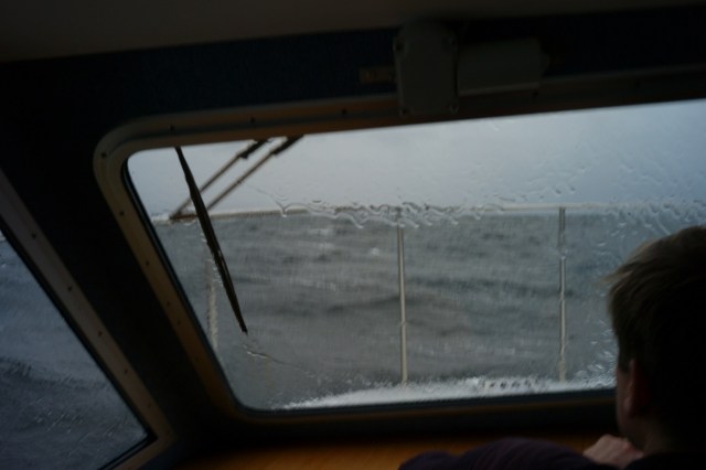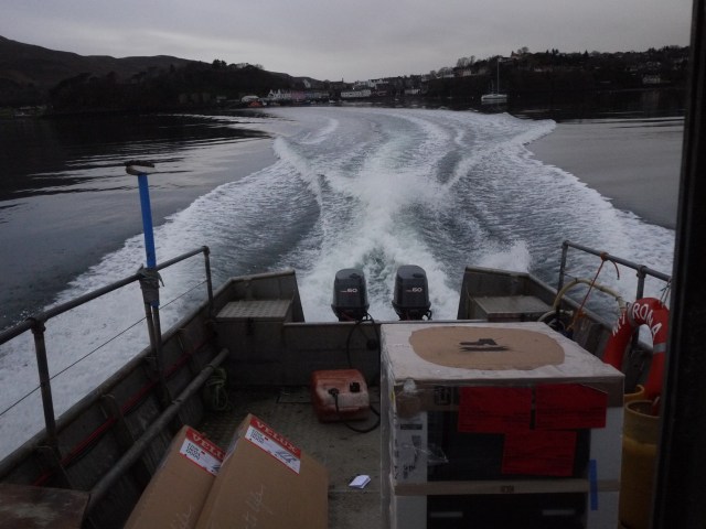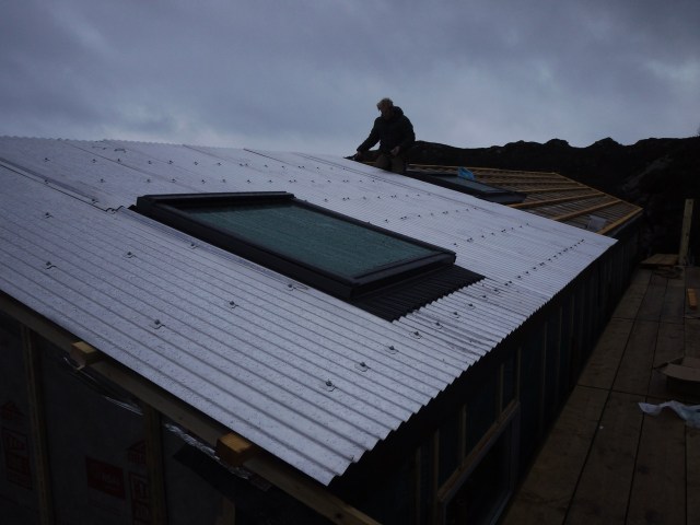 The only problem was that they do not sell the flashings with the window and of course we could not fit the aluminium roofing until we had those. The weather was crap and our ferry operators were away, Dan was broken down, so nothing for it but to take off for Portree on the only calm window of the week once they arrived at Skye Express.