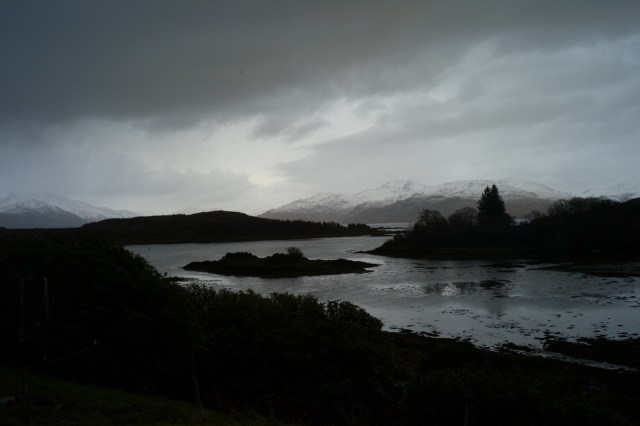 We were in Edinburgh Thursday expecting to go back Saturday but as often happens at this time the weather changed. I opened the laptop at 8.30am and there it was, Northerlies for a week. So we upped sticks and headed off prompt to Shieldaig.