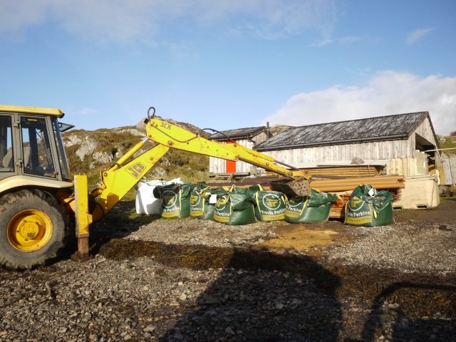 Ian the Joiner was held up from returning to Rona what with weather and other commitments, so I got on with moving the building material. Any calm (dry) day it is very important not to hang about.