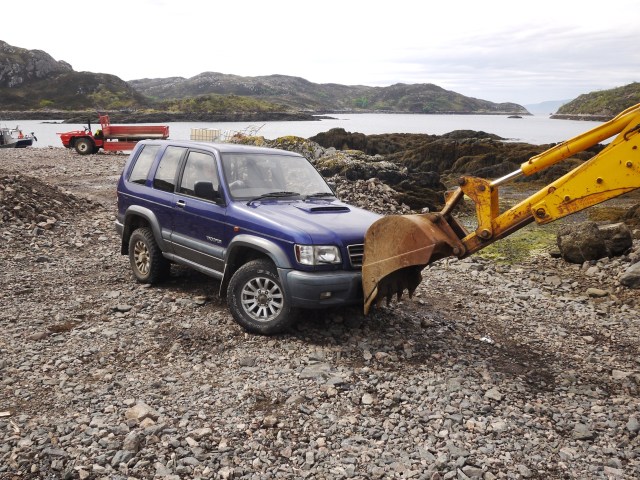 Our Izusu died, the turbo seals blew. We tried to sell it for spares but no takers not even the ‘Scrappies’. So the jeep was towed back up to the garage and is now a shed/greenhouse!