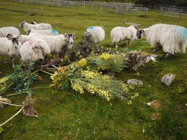 Spring time and time for a clean out of the polytunnel, the kale had gone to seed so before it re-seeded the whole of the ‘tunnel I ripped it out and the sheep enjoyed a wee bonus, they made short work of it.