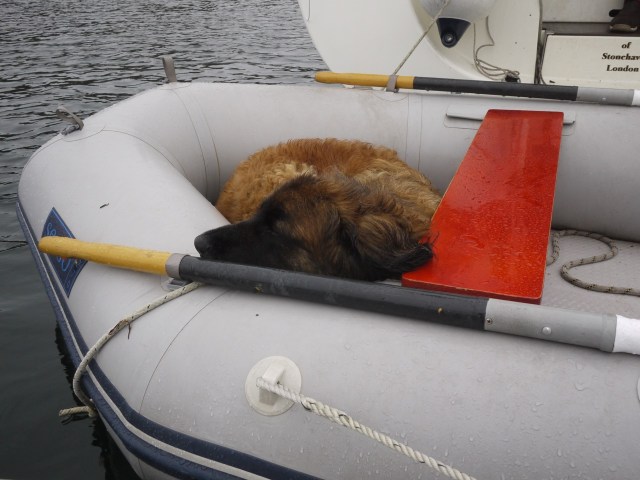 Here’s a picture from better weather times!! And on the Yachtie forum I’m following one commentator said that we had ruined the harbour by putting in 4 moorings!!!  They said there was no room now!