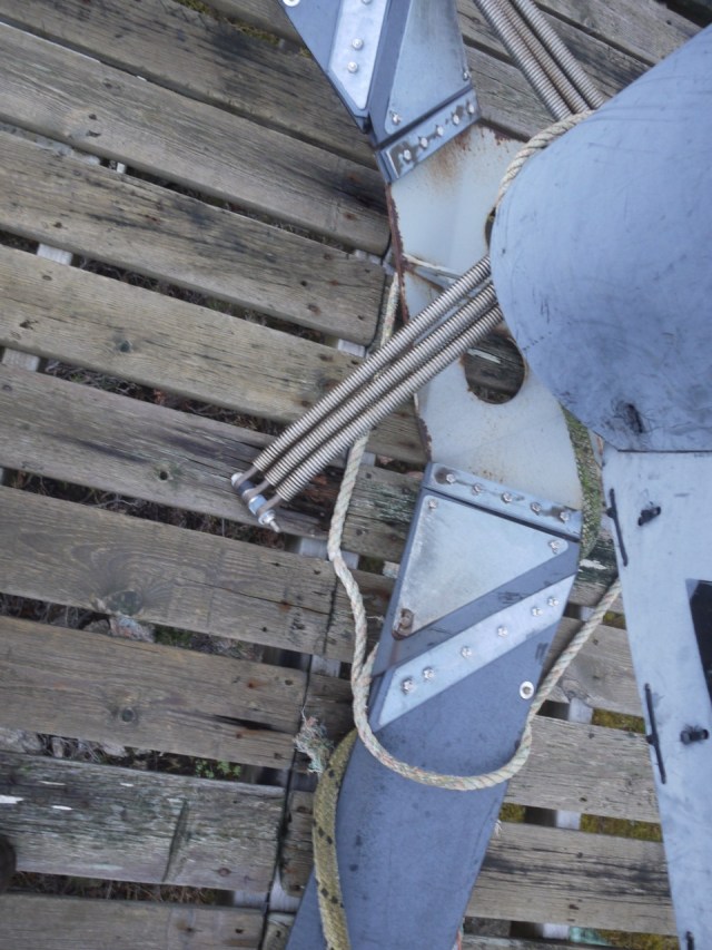 With no brake to stop it in high wind (since new) I had to resort to the dodgy tactic of throwing a rope into the blades, thankfully no damage with that but it was apparent that the windmill was out of balance and if left to its own devices it would shake itself apart.