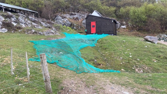 The ‘Work’ goes on and tidying up the place we stretched out the net we found just on the shore up North, a fair length and I am told it is in fact a trawlers net rather than from the FishFarm. All the same better right out of the water, now what can I use that for?