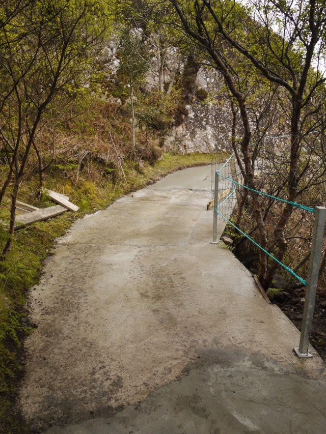 Onwards and upwards, the bags of 20mm mix slowly falling apart down by the shore and loosing their contents are a source of irritation. Try lifting them after they have been lying, no chance. So with some satisfaction we got a chance to fire up the pan mixer and get a little more of the pier path done.