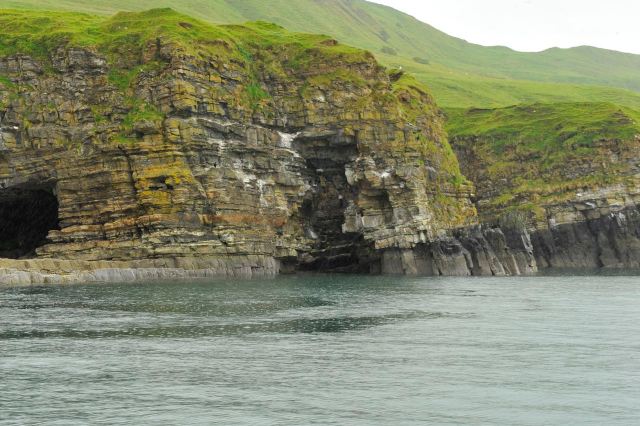 My Old friends  Ronnie,  Fraser MacDonald from Dingwall (HEB) used to visit this area often for work and tell many stories about it when I lived in Maryburgh, at last I could take time to take them in. A fascinating place.The rock formations and geology were quite breathtaking, to sail slowly along the coast, it would have been good to go ashore and spend more time here and there but the rain had other ideas. We went ashore at Rigg to see the rocks close up and to look for a landing stage where I could pick up friends. I was surprised to see how much erosion there was. We landed by an old Salmon station I guess and the sea was slowly claiming it back.