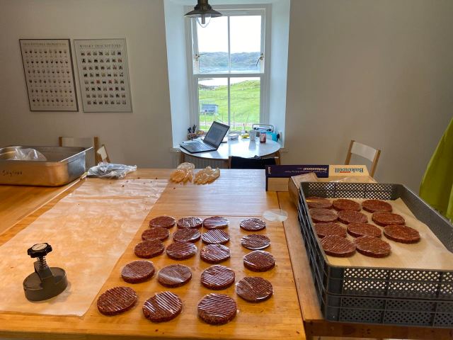 With the Lockdown affecting every aspect of our life it was no surprise for there to be issues with the Deer Management. One thing that happened was that the market for venison virtually collapsed. So it was really great to get a call from the ‘Chippy’ on the Pier asking if I could do some venison burgers for them to try. So many hundreds of burgers later delivered to Dan’s chip shop we had opened up a new avenue for Rona Venison. I hear they were very popular with the visitors.