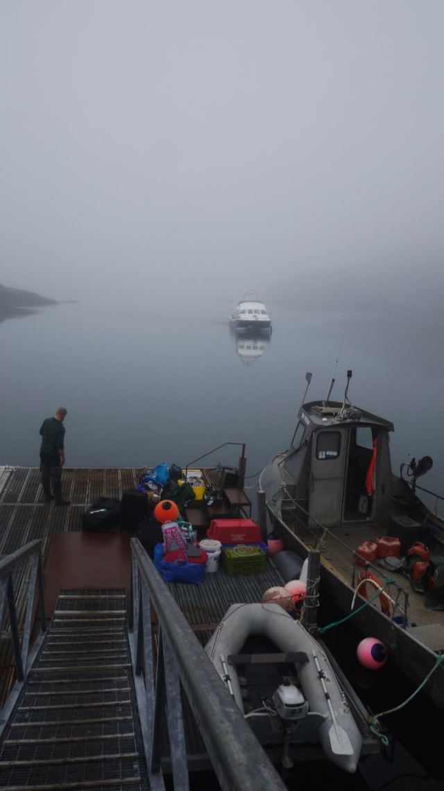 Another Saturday changeover, this time fog issues. MV Seaflower made a slow journey out to us, the fog very thick and visibility not very far at all.