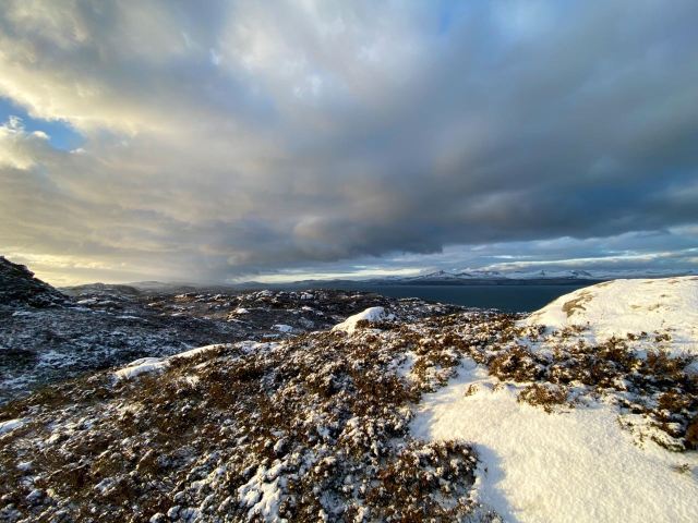 Just after New year the first signs of snow coming arrived, colder, East wind turning North. So we woke up on the 8th of January to just a few centimetres of snow but enough to be exciting, we do not get many snowy days on Rona, being as we are not much above sea level.