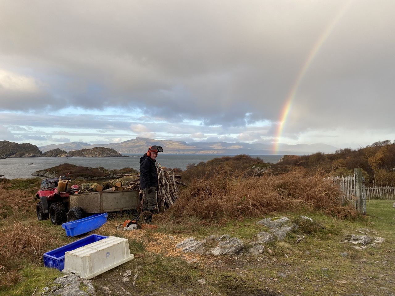 The weather this morning (10th November when I started this post)was calm for a change or at least calmer. It has been blowy and wet for weeks. At this time after a long season it is sometimes difficult to get motivated but motivated you must be to live here. There is so much to do and keep a handle on that there is not much time to dwell on your situation, but there are moments such as when I had three Eagles fly off from above Dry Harbour in front of me when going to pick up a load of cut lengths of birch.