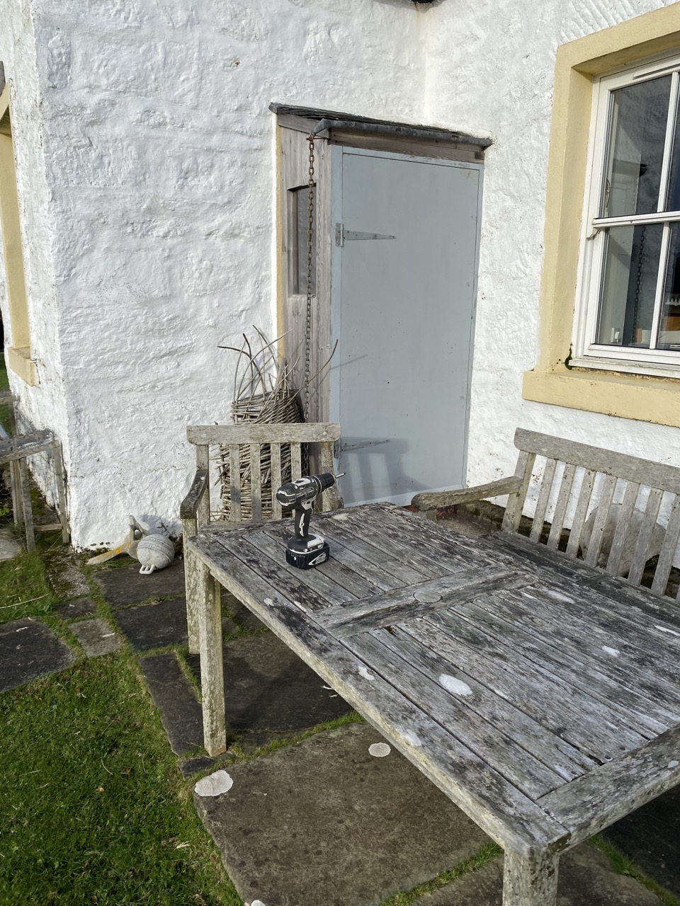 Back to the daily list and the winter storm door was due to go back on. This outer door gives the lock, seals and porch on Rona Lodge a chance. Years ago we discovered that the computer was getting verdigris on the motherboard with the salty air coming through the gaps in the continuous winter gales, not good.