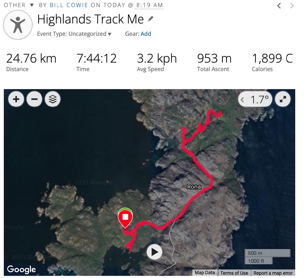 My new Garmin watch is proving useful with its tracking app. Here is the day above on the screen, the many trips back and fore to Dry Harbour. The days time and distance done. It was a busy day for the ATV but not unusual, still a surprise to have done 24+ Kilometers.