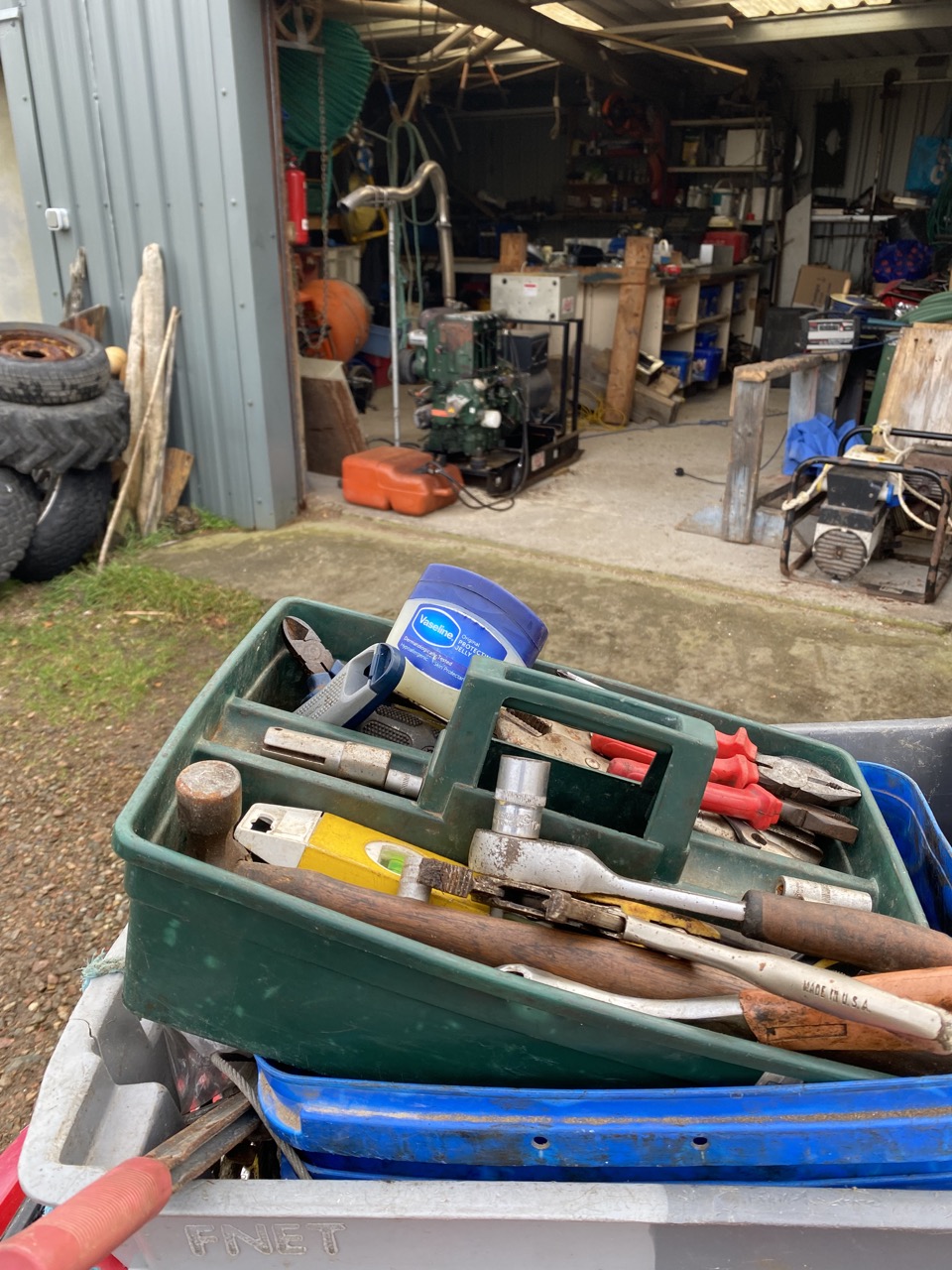 So, nothing for it but to haul out the spare in the garage, stick it on the tractor, head down to the genny shed and install it.
