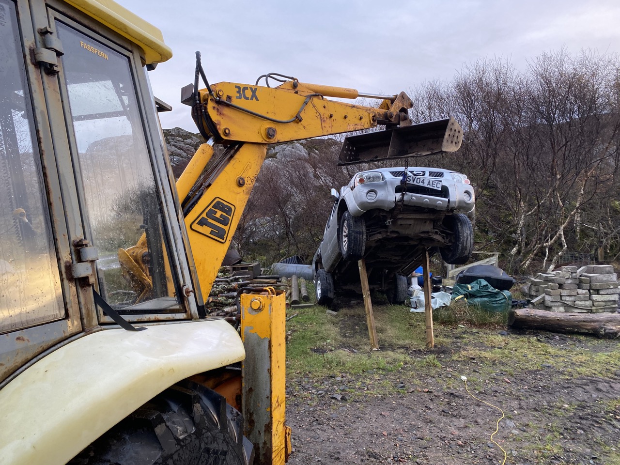 No time to mess about, the JCB is a very handy jack!!