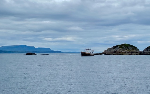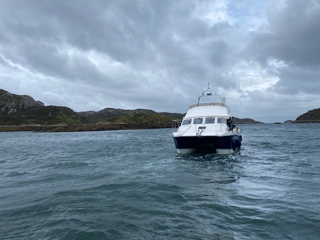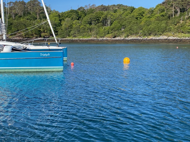 Yachts had been steady, a trickle had become a flood with 6 or 7 yachts in last weekend, the sun was shining but it was Northerly, so a lot of yachts were not coming North of Mallaig. I thought Tryptich had anchored but on closer inspectioon I saw that he had bridled the strop. Just checking!!!!