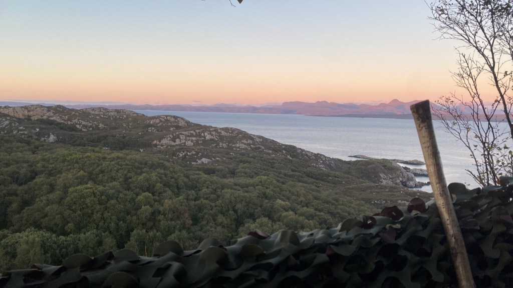 Back to Rona, I was getting dizzy by the end of August. Coming and Going. With stalking guests coming it is always a good idea to have a look around to assess the deer population. More on the Deer page about this years activities. It was nice to spend an hour just sitting down in our High Seat watching the wildlife, it was a lovely night, no midgies.