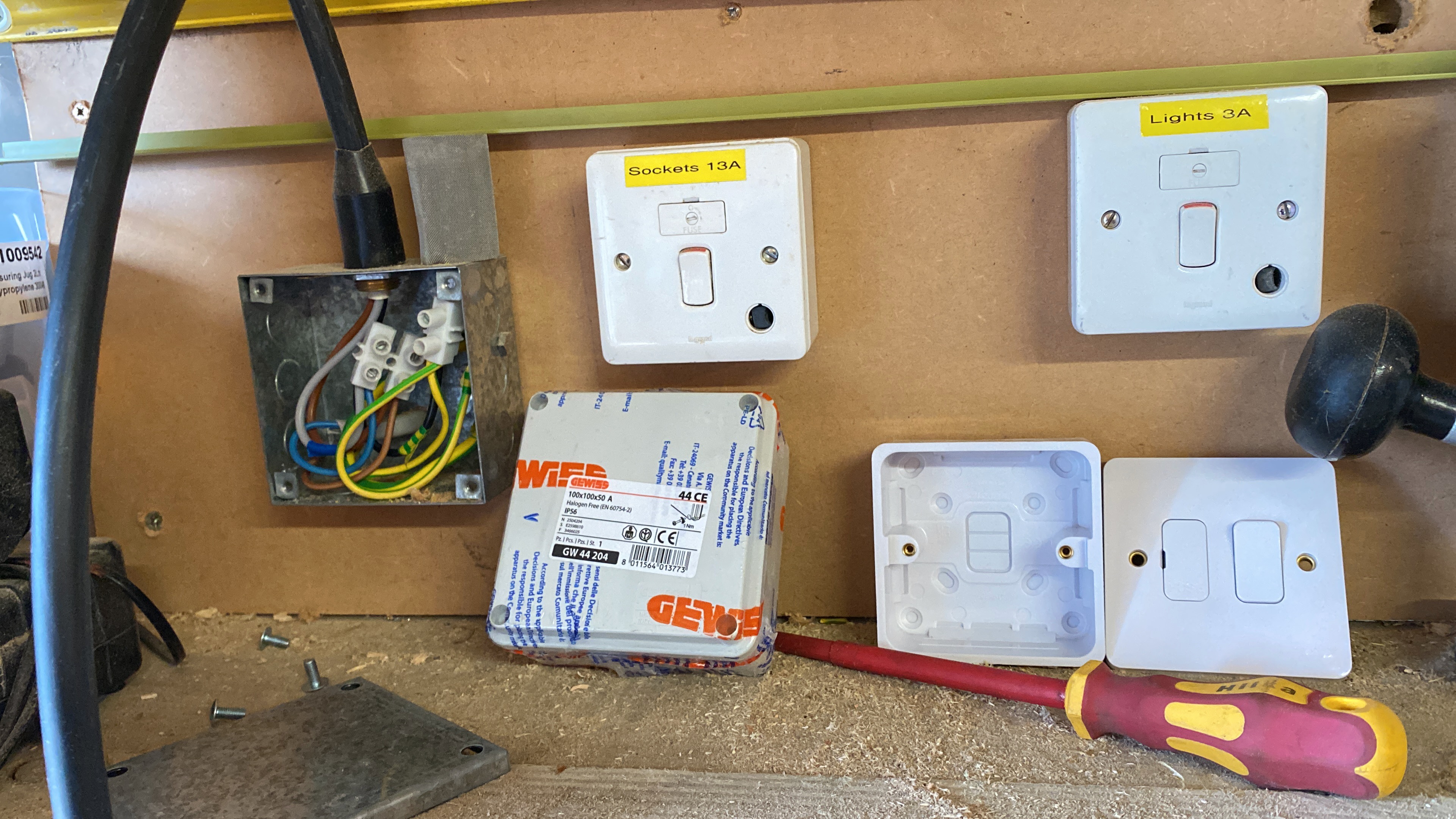 Now wiring is just like the blog, to get power up there we need new cabling and switches. I don’t normally do electrics but needs must. Not much power required. Lots of headscratching!!