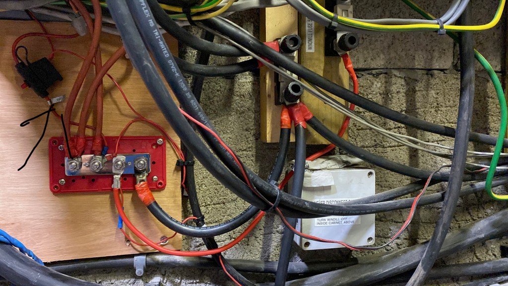 Back to the wiring, in an effort to tidy up some of the off grid stuff I had ordererd this red junction box to gather all the positive leads and cover them, althouigh only 48 V we do not need any sparks with gassing batteries.