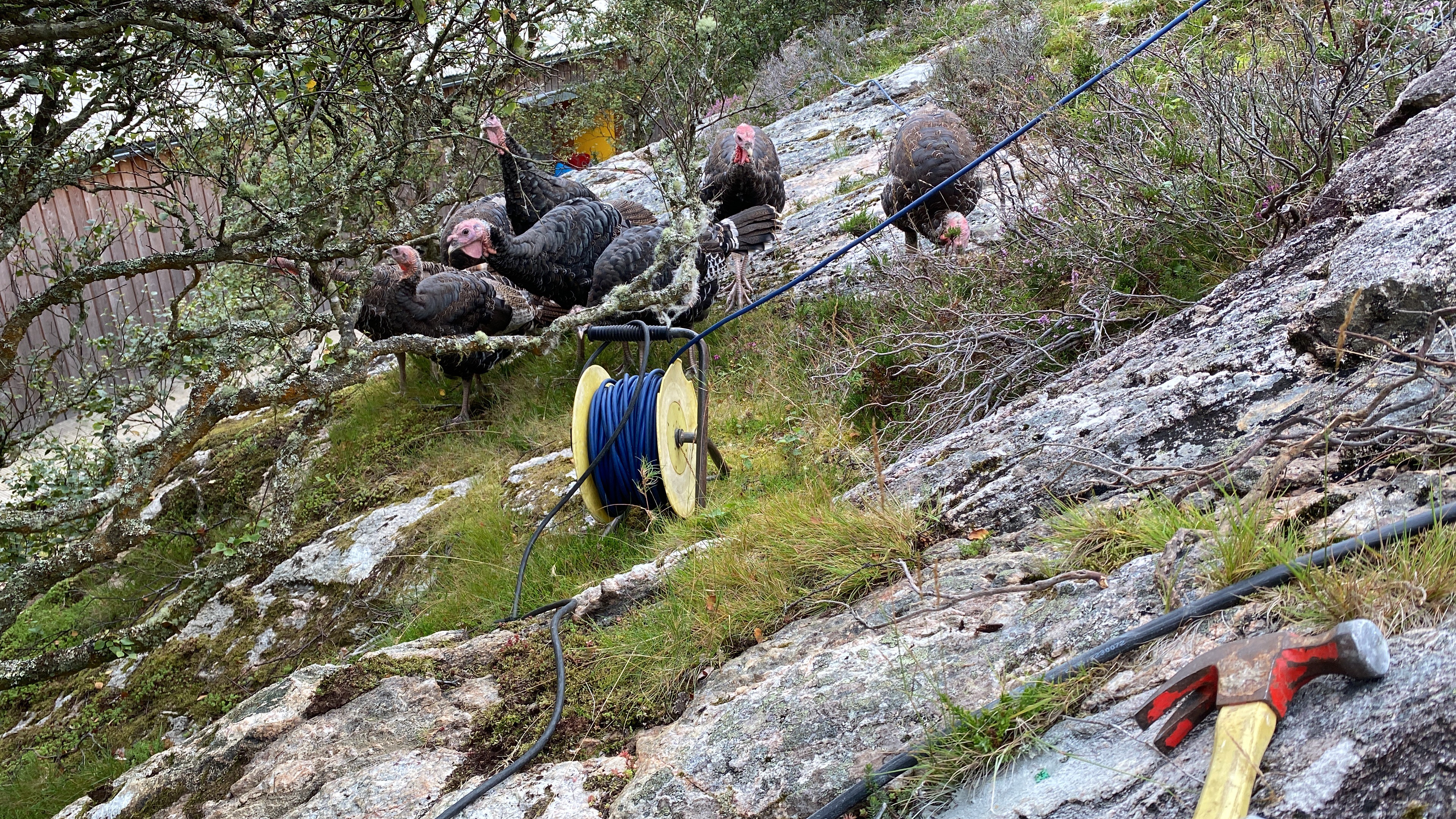 The turkeys have taken a keen interest in the back door, not a problem BUT they do leave their calling card and have taken a delight in tipping out the plastic/cans recycling.