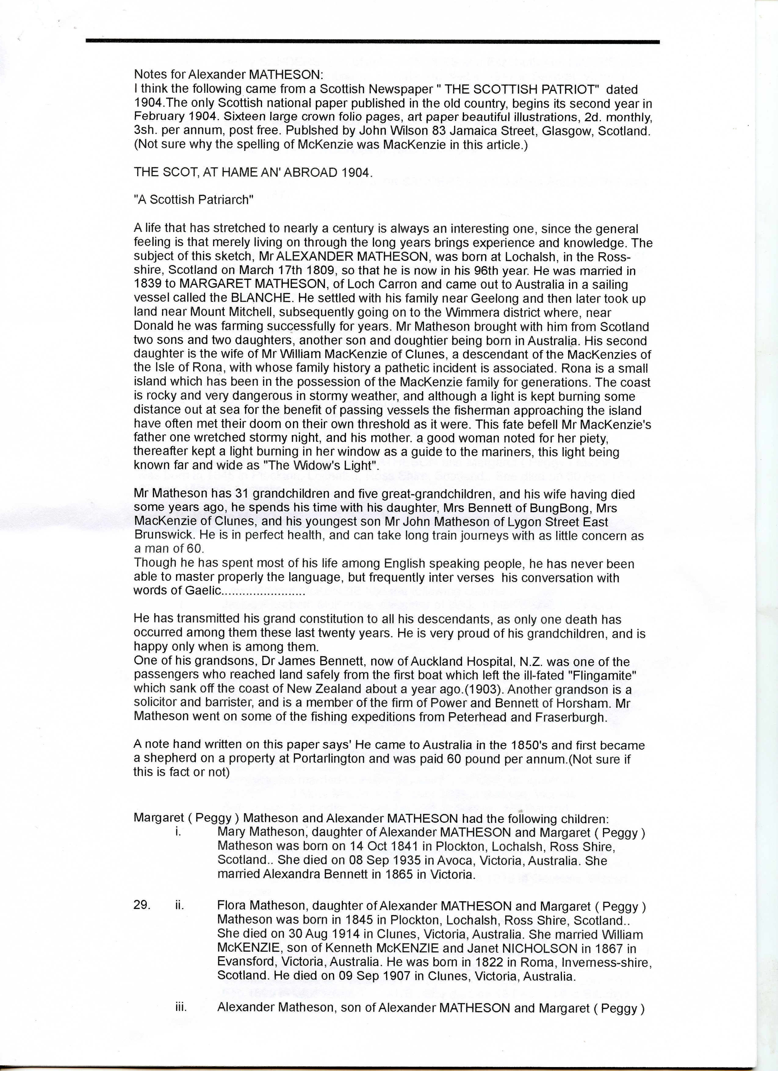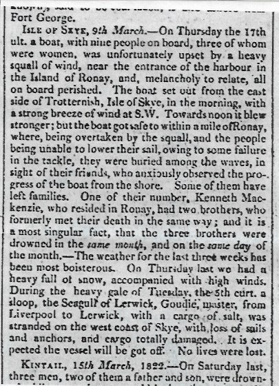 This cutting was sent to us I think or seem to remember by Dugald Ross, Staffin (the museum). From the Inverness Courier of that time.