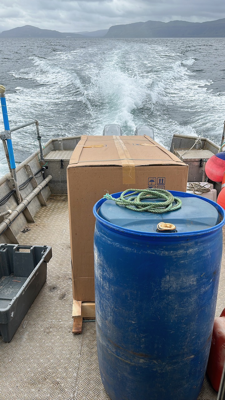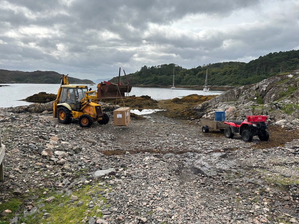 As the month moved into September we had the usual suspects beating up their favourite Rowan Tree, interesting to see the deer browse this tree, plucking leaves off at the height it is. The tree survives, deer are the best ‘pruners’. More venison means yet more freezers. Although we are selling a lot of venison, when butchering we need lots of space, the venison business part of Rona has grown arms and legs this year for sure. This freezer was ordered on Ebay, I’m not too sure of Ebay but this dealer had really good feedback so we took the chance. Ordered Mid Week, it was in Skye Express’ depot Portree Friday, uplifted and delivered by MV Rona on the Monday, amazing.