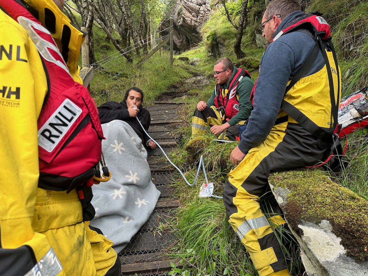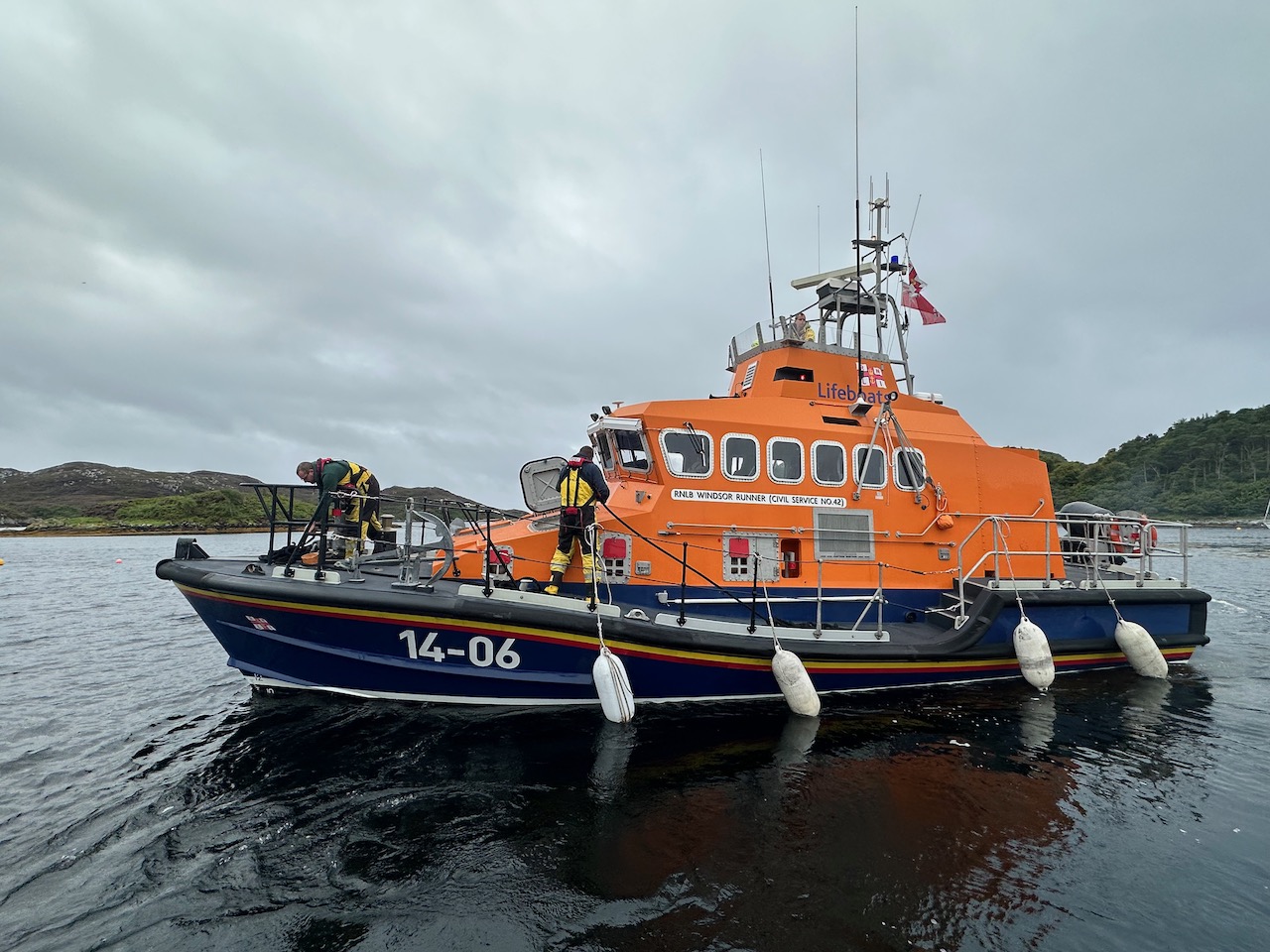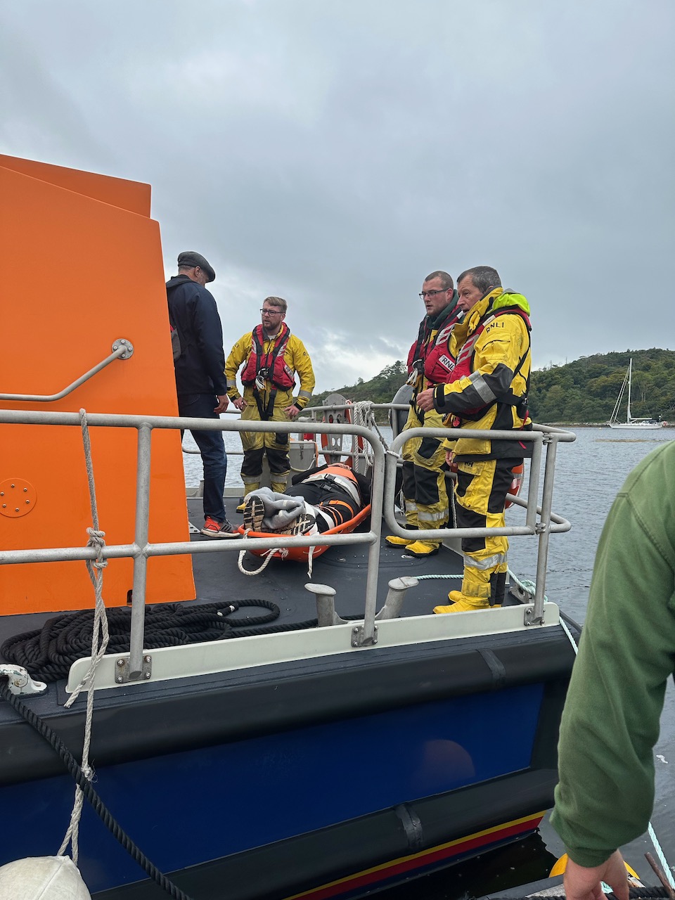 We had a bit of North wind this year and every year there is a time when jellyfish must be at their peak and the beaches around Rona are jammed with them. Still in August this guest from Kuwait had an unfortunate accident, his trainers were very muddy and he slipped on the steps coming back from his walk. He was one of MV Seaflower’s customers. We got the call and attended, but could see it was serious although the casualty was very calm. We called Stornoway Coastgaurd and the Portree Lifeboat attended in no time. Stuart attending to the ‘customer’ very professionally. With pain relief they moved the gentleman onto the boat thereafter to Broadford, not a good way to end your holiday. Two breaks in his upper leg.