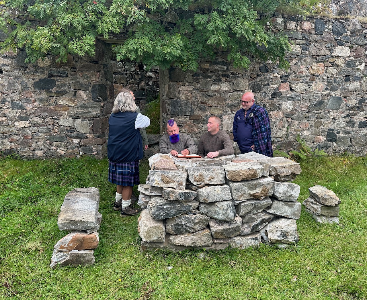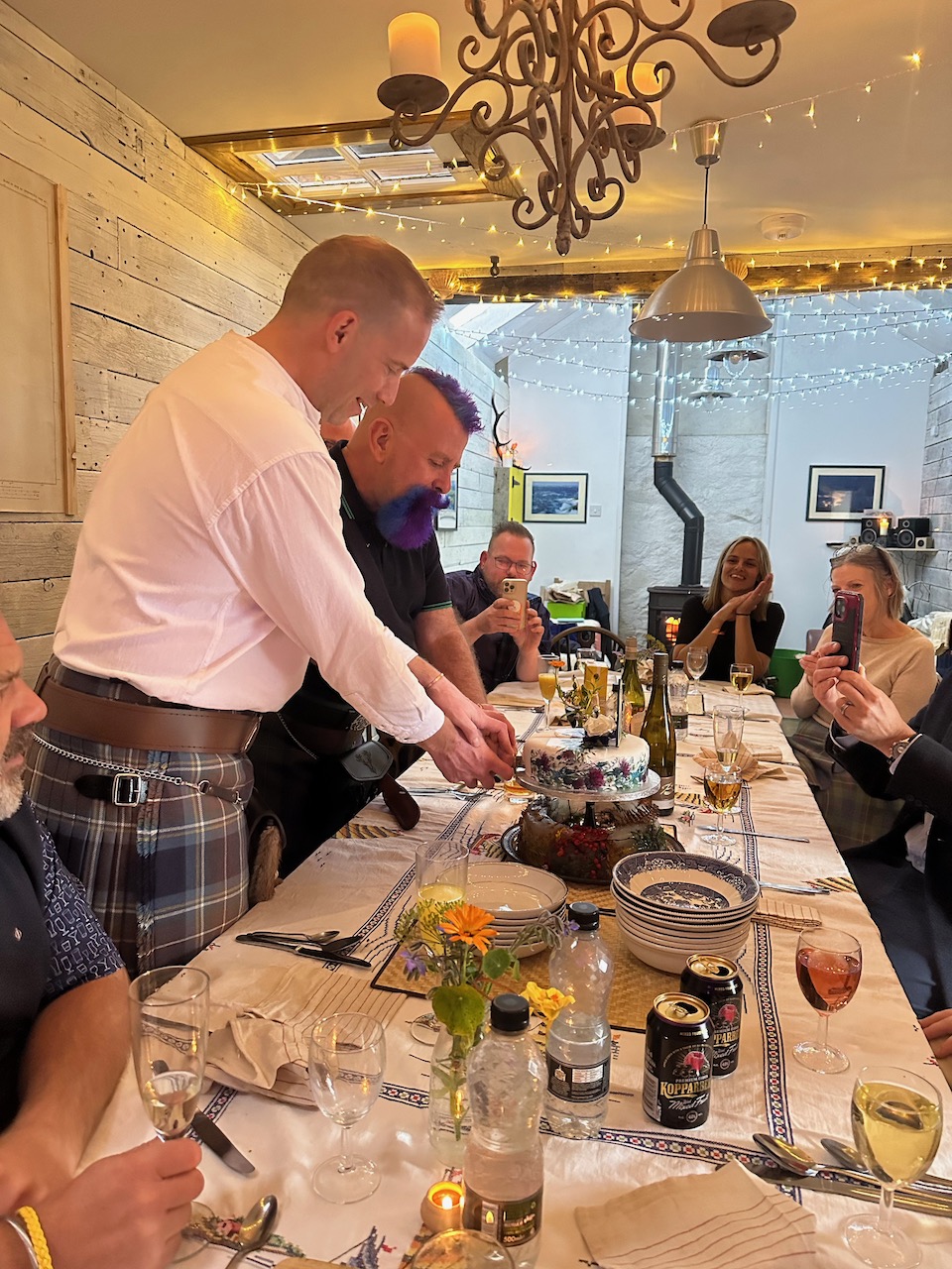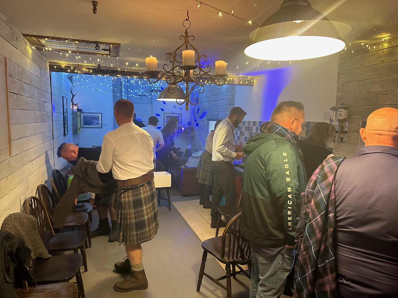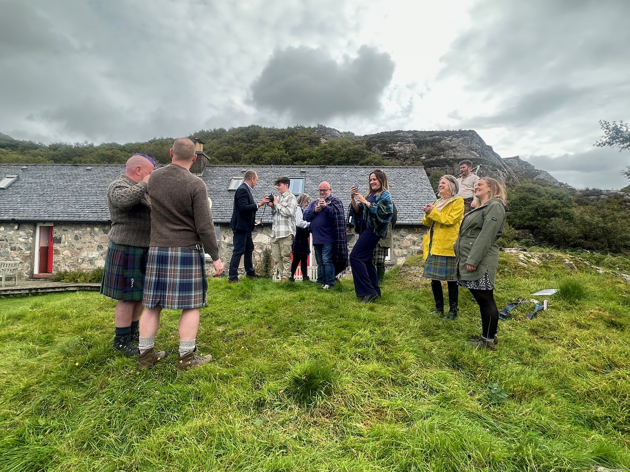 Needless to say it all went very well, we prepared the ‘Bothy’ and the food. The drink was plentiful and it went on until a late time, I can’t remember after 9pm!!!! It was a full day, with a lot of love and emotion, not to mention the men in kilts, plus the lovely service by Rona Burstow the celebrant and Grant Munro the piper.